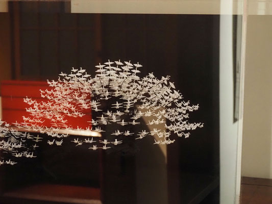The paintings displayed on the three walls are works by Nakajima Mugi. Their bright colors and bold compositions bring light and warmth to the winter scenery, which can often feel dark and subdued.